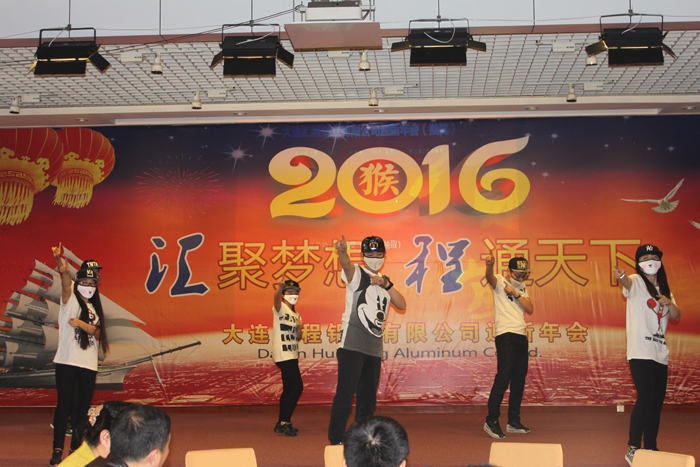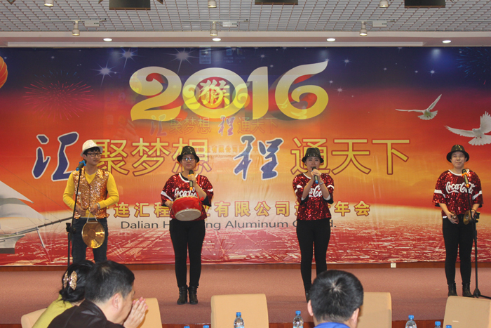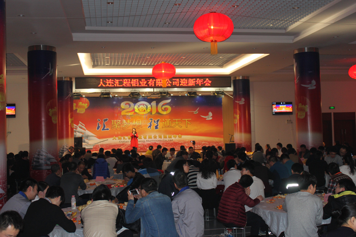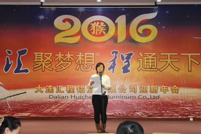2015年12月28日大连汇程铝业有限公司“2015年优秀员工表彰大会 暨 2016年迎新年会”在员工活动中心隆重举行。公司主要领导与全体员工一同参加了此次活动。整个活动历时四个小时,包括董事长致辞、优秀员工表彰、优秀员工发言以及员工文艺汇演等环节。活动进行中,掌声数次响起,笑声此起彼伏,全场始终洋溢着振奋、进取、热烈、愉快的气氛,精彩纷呈。